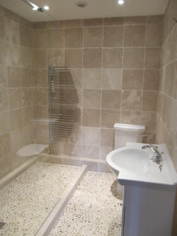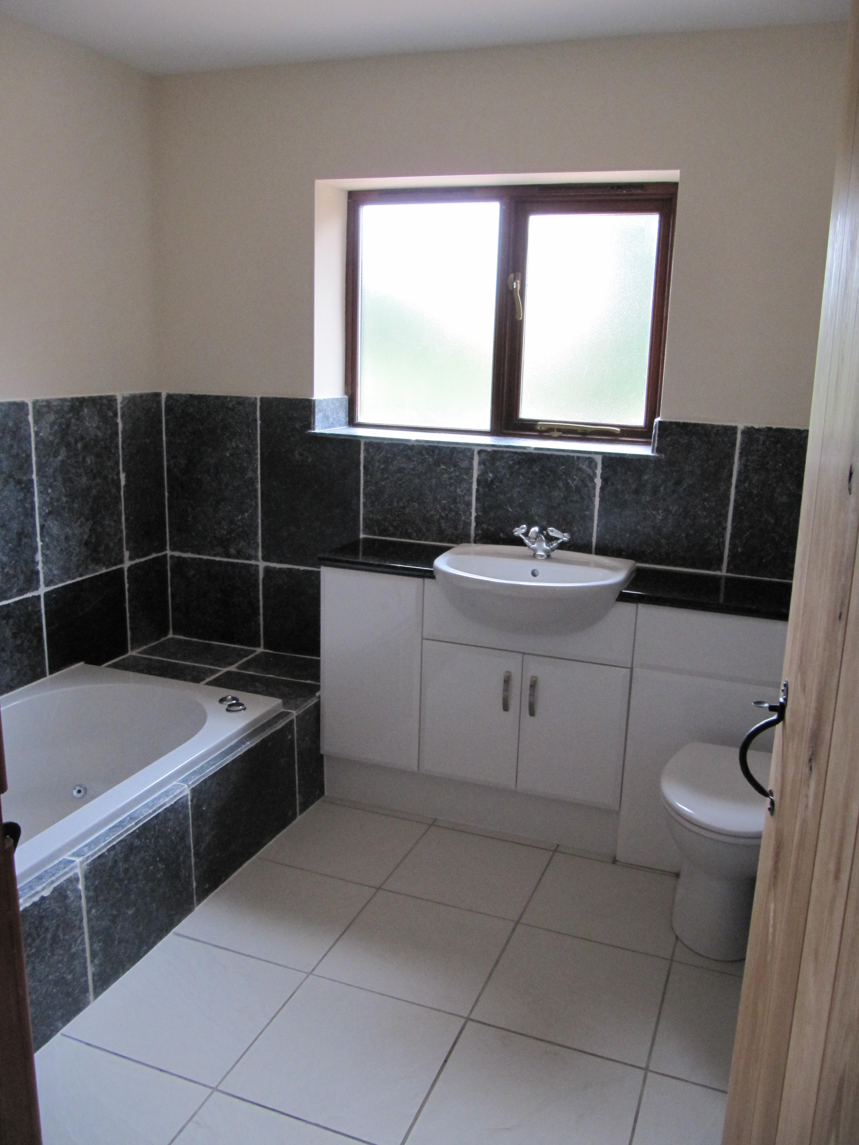 attachment, dual hand grips, pedestal wash basin, low level flush WC, half tiled
