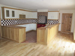 Entrance way & oak staircase | Spacious kitchen & dining room - all in real oak finish with a Claret Rayburn and Ceramic Butler sink |